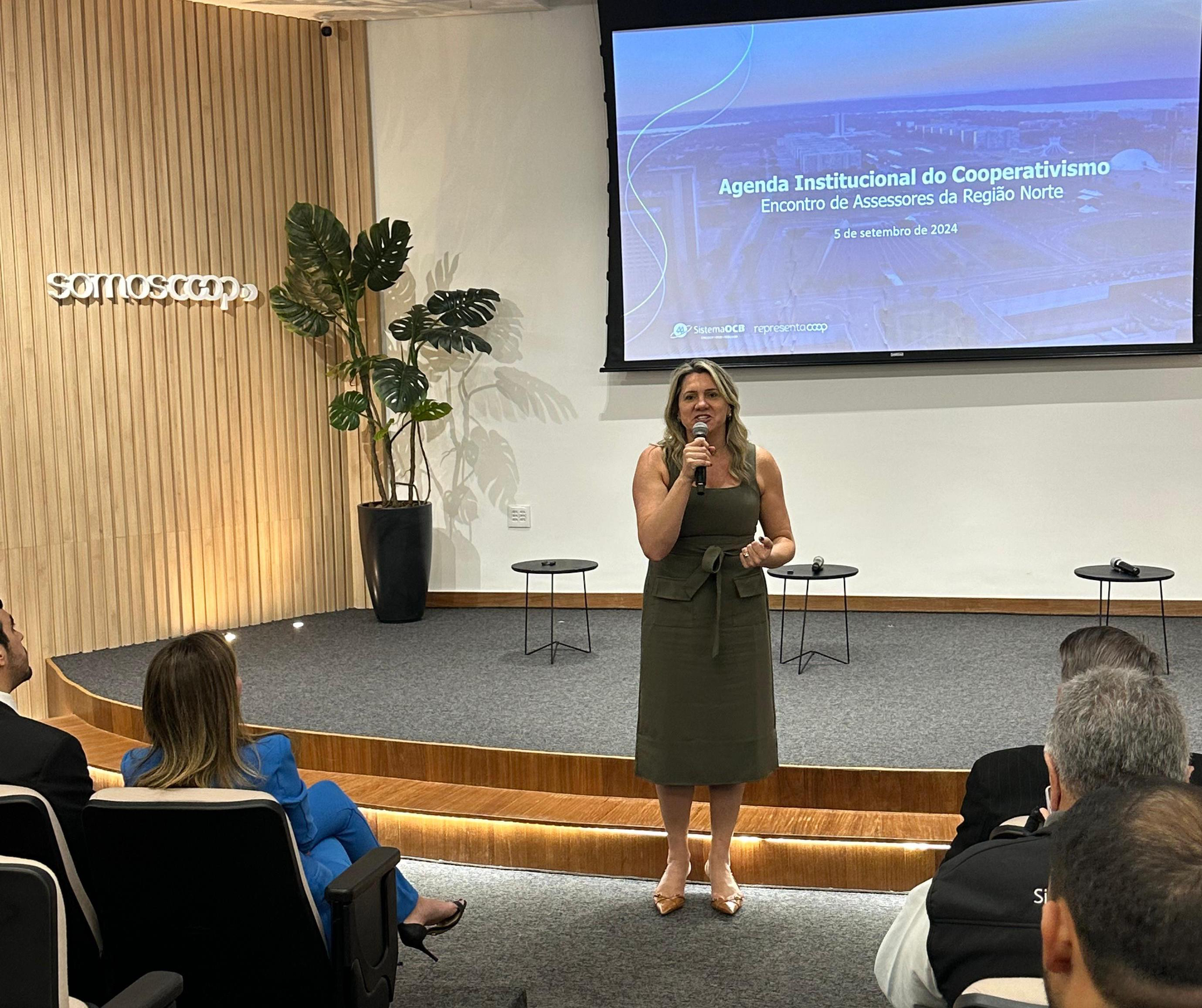 Fabíola Nader Motta, gerente-geral do Sistema OCB, falou durante o encontro sobre o diferencial humano no cooperativismo e ressaltou o papel das pessoas na base do movimento. "O que diferencia o cooperativismo são as pessoas, somos feitos por pessoas e cooperamos um com o outro. O coop é uma ferramenta poderosa de inclusão produtiva, economia de escala e coletividade. Nossa essência democrática é o que nos fortalece", disse.