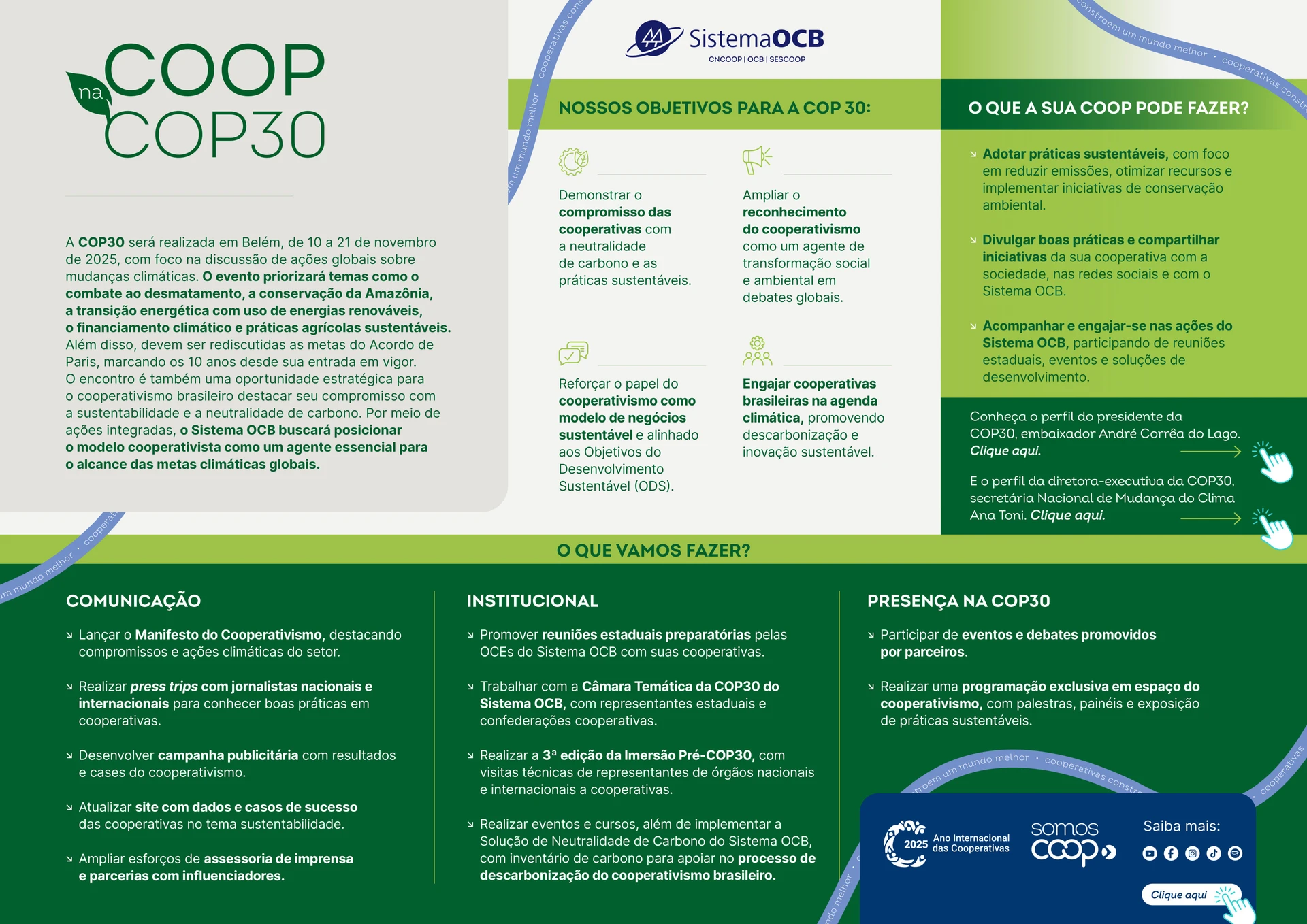 Confira no infográfico abaixo mais detalhes sobre as ações previstas pelo Sistema OCB na COP30: